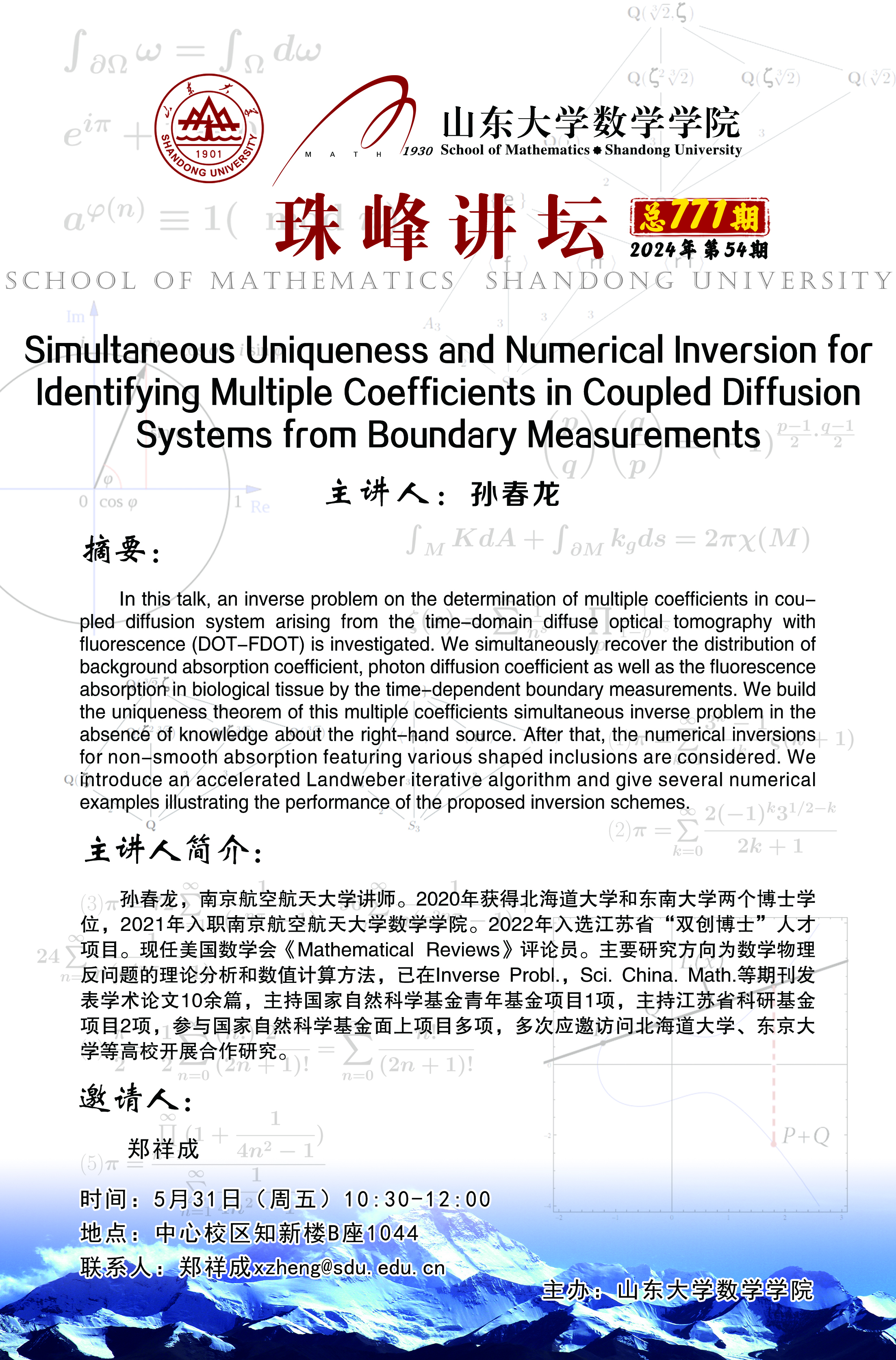 下一条:3003新葡的京集团珠峰讲坛第770期:Stable Determination of the Source of Fractional Wave Equations