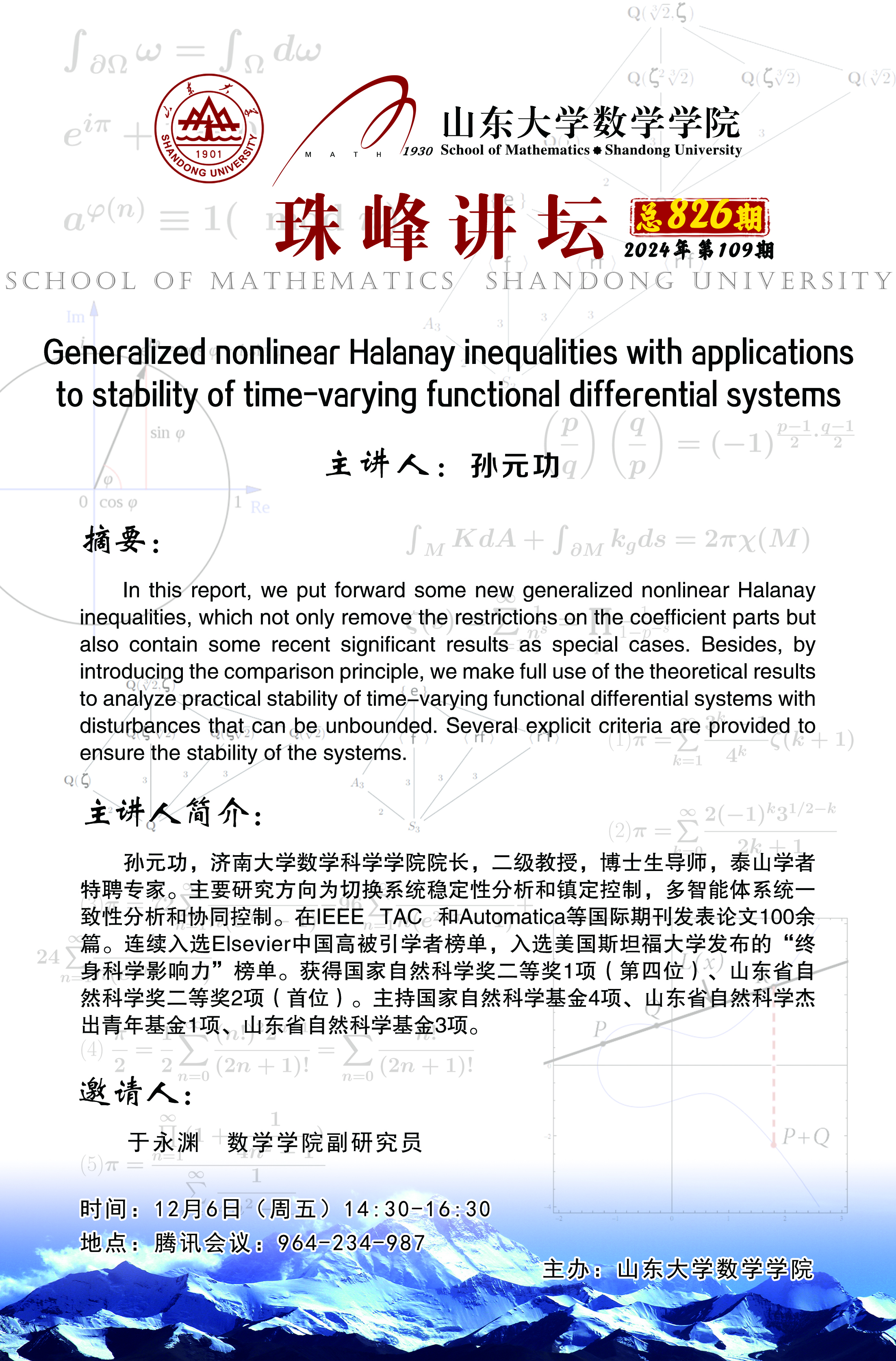 下一条:3003新葡的京集团珠峰讲坛第825期:随机激励下非光滑系统全局动力学Melnikov方法及其应用