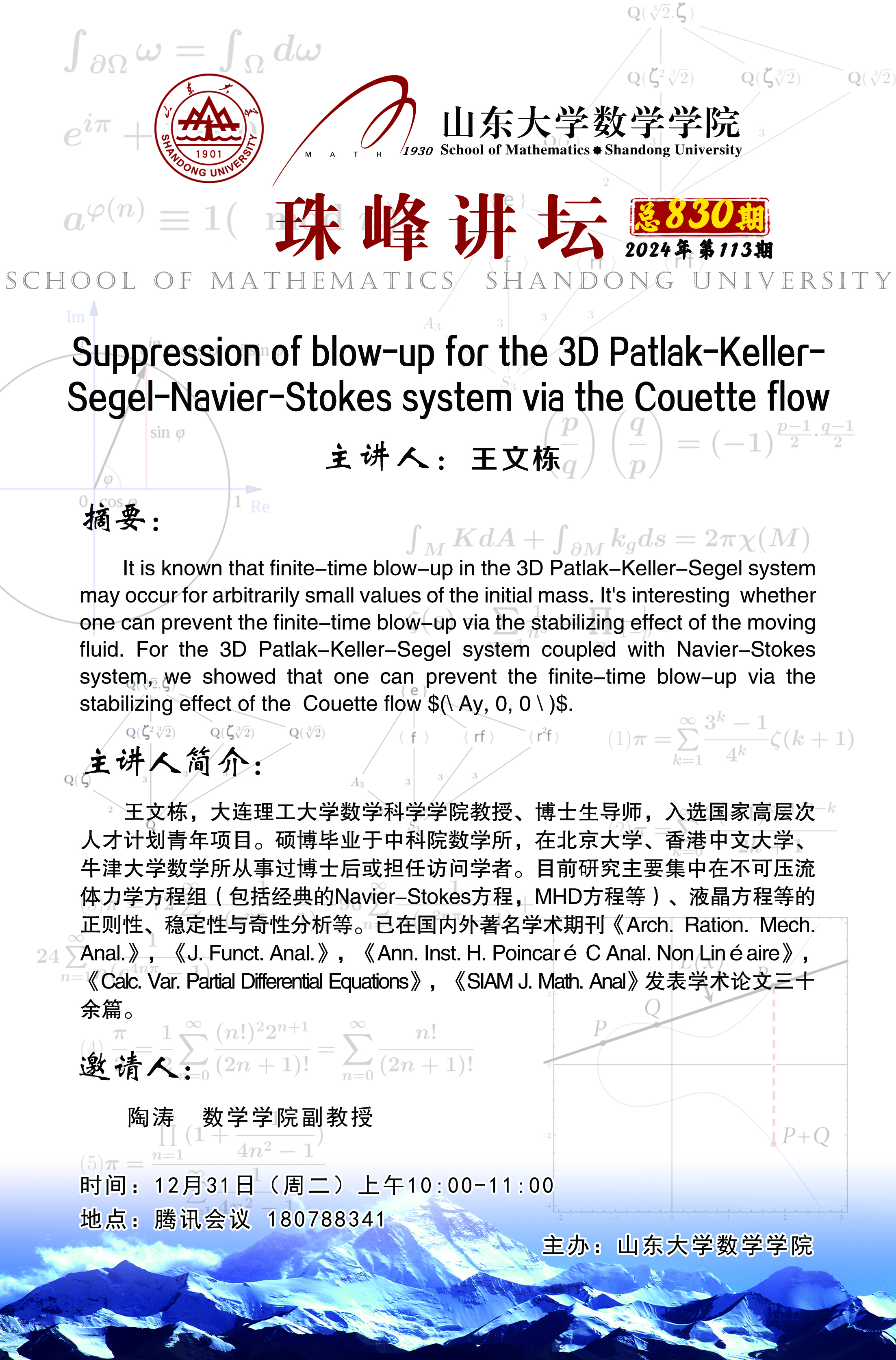 下一条:3003新葡的京集团珠峰讲坛第829期:Transverse Spectral Instability of Small Periodic Traveling Waves for the Euler-Korteweg System