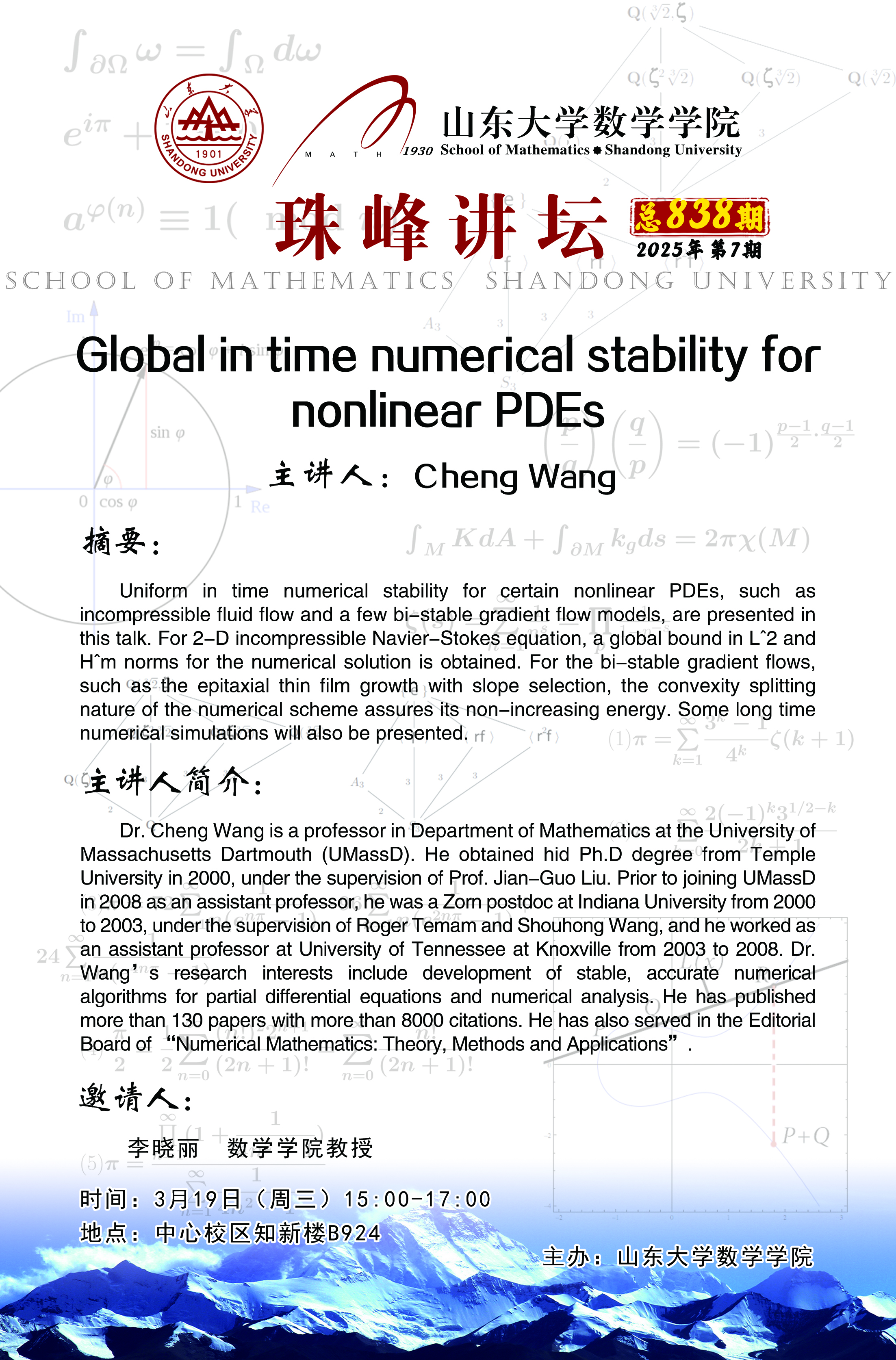 上一条:3003新葡的京集团新星讲坛第35期:Structure-preserving parametric finite element method for surface diffusion based on Lagrange multiplier approaches