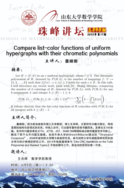 下一条:3003新葡的京集团珠峰讲坛第847期:Ramanujan Property and Edge Universality of Random Regular Graphs