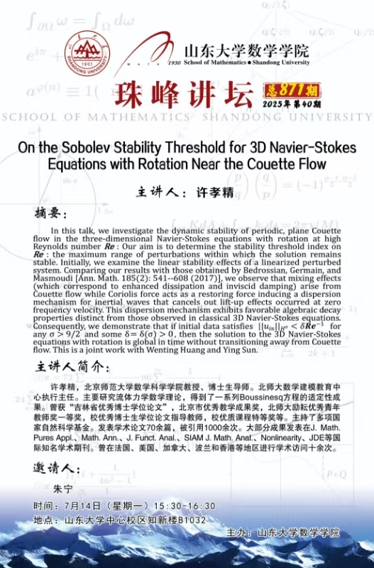 下一条:3003新葡的京集团珠峰讲坛第870期:Stability and Large-Time Behavior of Compressible MHD Flows Near a Background Magnetic Field