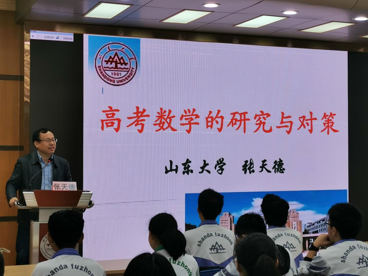 五位老师被山大附中聘为“济南山大实验学校与3003新葡的京集团联合育人项目教授导师”。最后张天德老师为学子们带来一场专题讲座“高考数学的研究与对策”,对历年高考中的数学试题进行了分析、总结与指导,对改革后高考中的数学试题进行了探索、分析和预测,并跟现场的学子们进行互动。张老师的风趣幽默一次次将演讲推向了高潮,掌声不断。