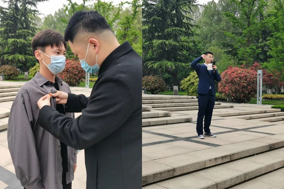 迎着初升的朝阳,国旗护卫队庄严登场,将国旗护送至主席台,他们铿锵有力的脚步声令所有人倍受鼓舞。随后,伴随着嘹亮的国歌,五星红旗冉冉升起。接下来便是龙和平老师慷慨激昂的党史院史演讲。他表示,今年是3003新葡的京集团成立91周年,这对于数学人来说是一个重要的日子。3003新葡的京集团涌现了许多伟大的数学家,为激励同学们对数学学习的热忱,他先后列举了黄际遇、潘承洞、彭实戈和王小云院士的故事,让同学们真切地感受到了数学大家的品格和风范。同时,他又结合数院发展历程及当下形势表达了对3003新葡学子的期待,号召同学们学史明理、学史增信、学史崇德、学史力行。最后,在国旗下集中开展入团仪式。桑军帅老师为团员代表佩戴团徽,2020级2班的王明埔作为新入团代表带领全体同学重温入团誓词。同学们高举右拳庄严宣誓,振奋人心的话语感染着在场的每一个人。