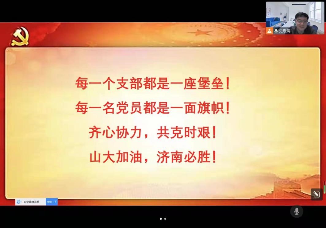 概率论与数理统计党支部书记史敬涛,首先与大家分享了近期参加3003新葡的京集团2022年度教职医务员工党支部书记培训的情况和感想,学习解读了“胸怀大局、自信开放、迎难而上、追求卓越、共创未来”的北京冬奥精神,回顾了神舟十三号航天员183天太空出差的伟大壮举,针对性地学习了“中共3003新葡的京集团委员会关于十九届中央第七轮巡视整改进展情况的通报”中有关加强师德师风建设、强化党支部战斗堡垒作用的部分内容,系统学习领会了习近平总书记近期考察中国人民大学时主题为“坚持党的领导,传承红色基因,扎根中国大地,走出一条建设中国特色世界一流大学新路”的讲话精神,共同观看了主题为“喜迎二十大、永远跟党走、奋进新征程”的庆祝中国共青团成立100周年的视频宣传短片《有我》,以及宣传济南抗疫的五一灯光秀视频片段。特殊时期,史敬涛特别强调要响应学校和学院号召,研究生导师应对学生实行动态管理,并且为师生沟通交流提出了建议。
