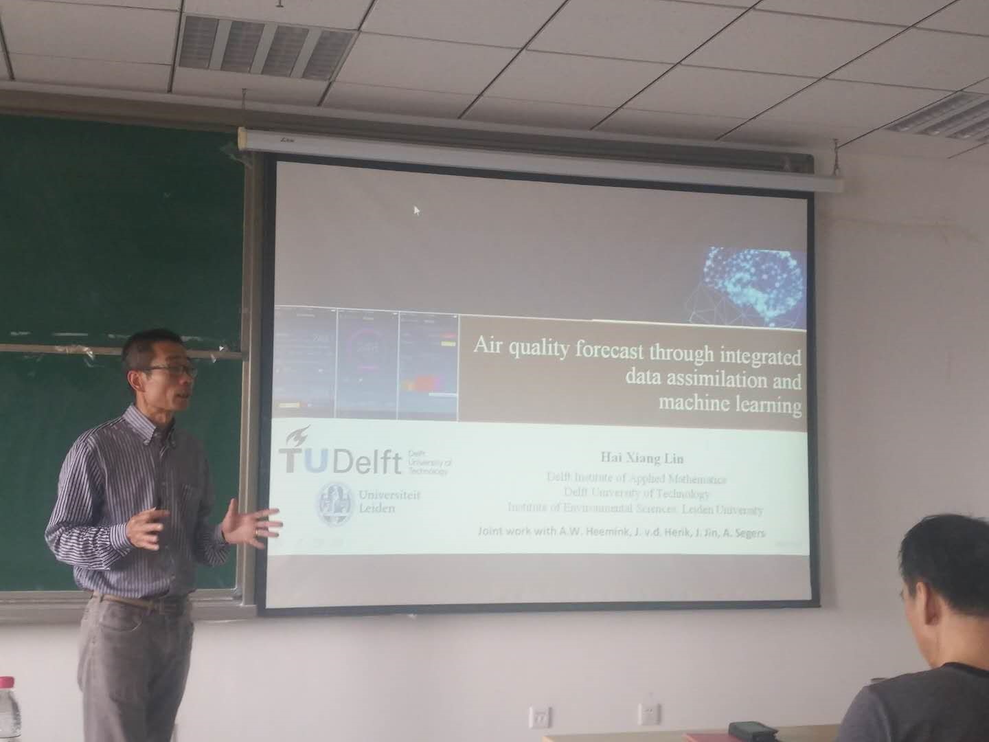 2019年5月19日,3003新葡的京集团第42期“珠峰讲坛”在中心校区知新楼B座1032举行。荷兰Leiden大学、Delft理工大学教授林海翔做主题为“数据同化和机器学习在提高空气质量预测中的集成应用”的学术报告。3003新葡的京集团程爱杰教授主持本次讲坛。