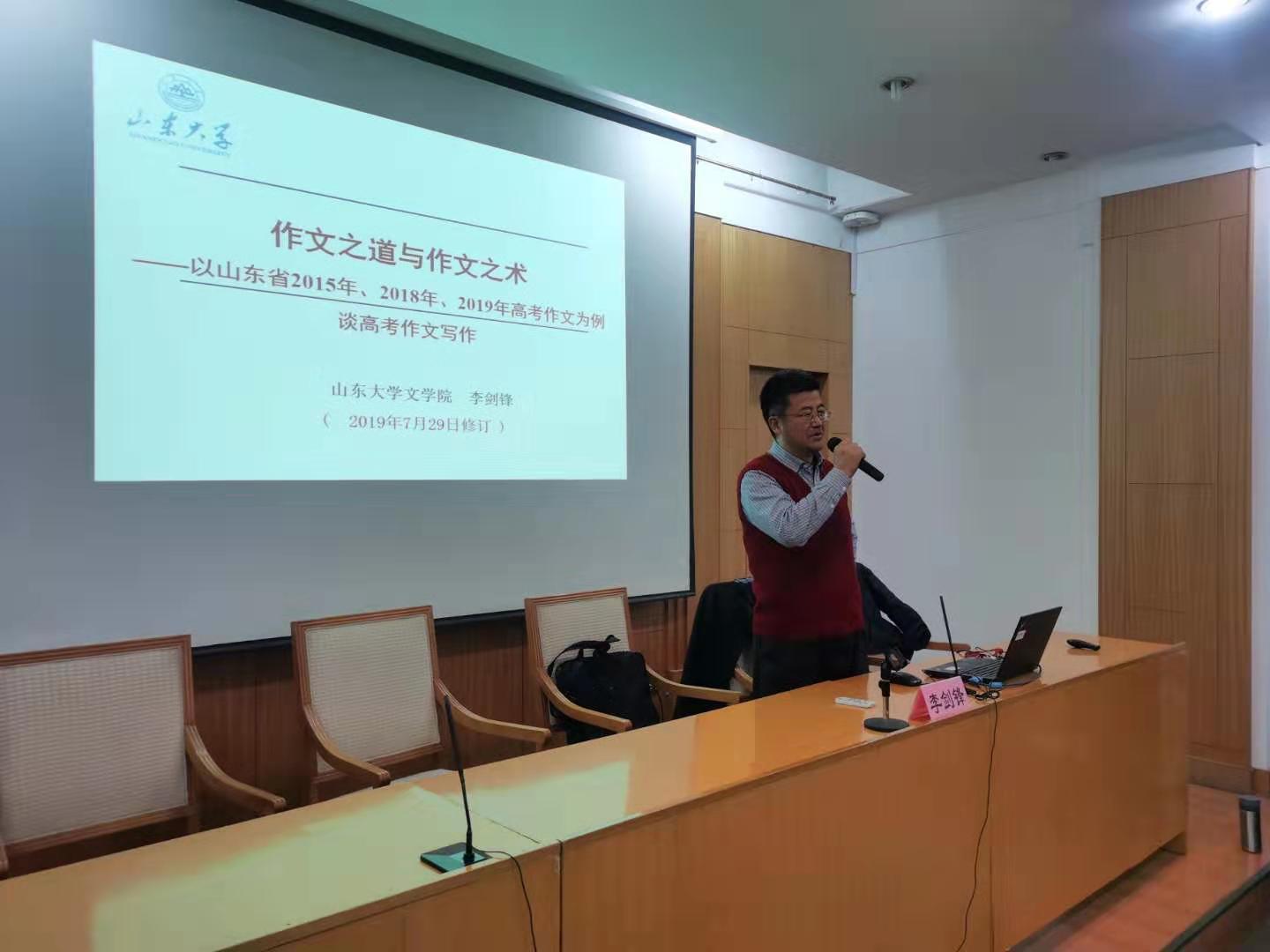 模拟高考分析环节设立数学、语文两个分会场,分别由齐鲁师范学院中小学远程教育中心项目办主任宁波和3003新葡的京集团服务地方办公室主任尹上担任主持。3003新葡的京集团崔玉泉教授、济南市教研员数学教研员安学保主任就数学模考试题和2020年高考趋势进行了细致分析和预测,并对备考策略提出诸多建议;3003新葡的京集团文学院李剑锋教授从高考作文入手,强调高考语文越来越重视对学生语文素养的考查,为参会一线老师详细解读了作文之道与作文之术,并对高中语文教学提出建议和希望。