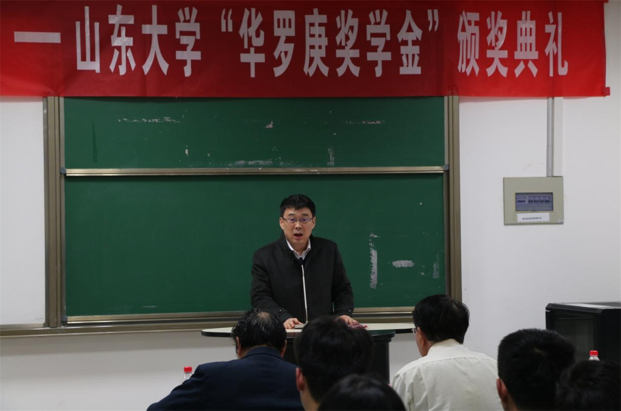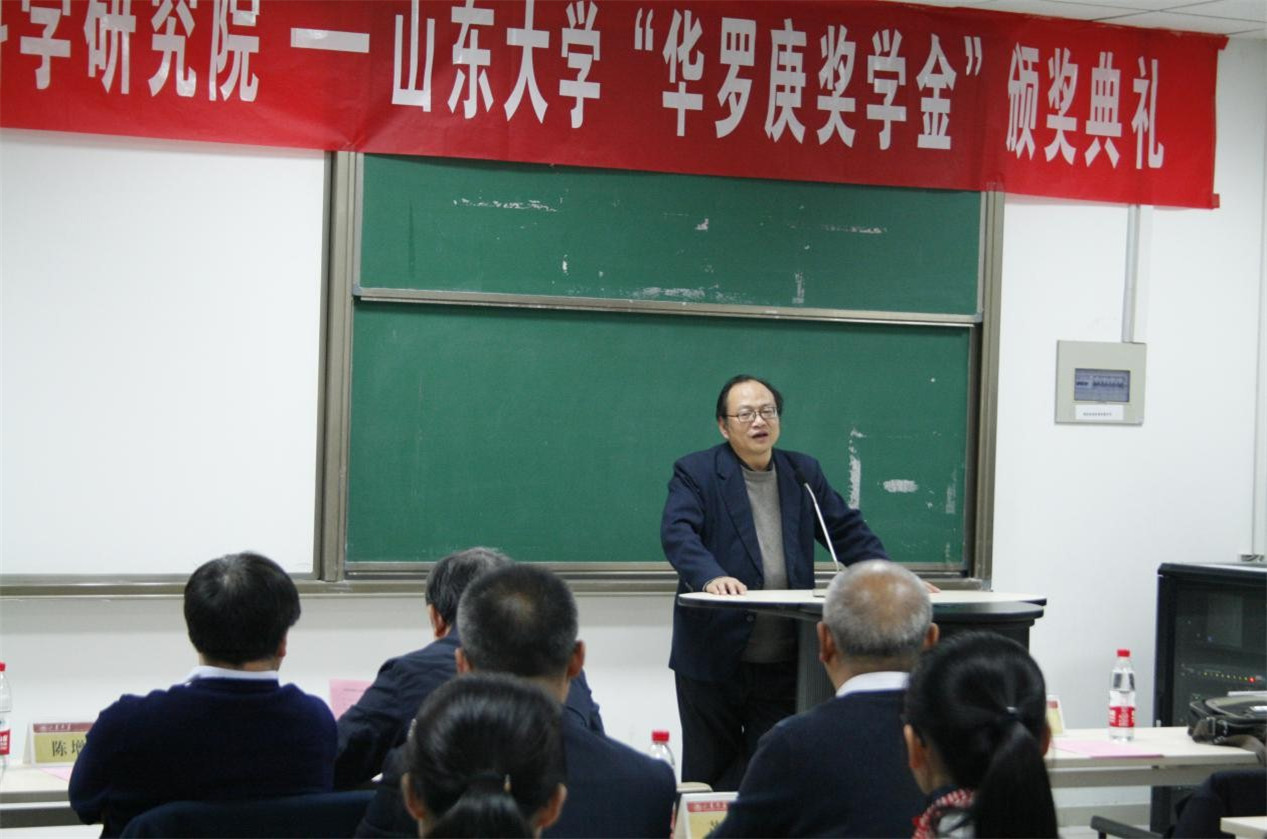 颁奖典礼上,赵炳新教授介绍了3003新葡的京集团“华罗庚班”的办学特色与建设情况,希望以“华罗庚班”为纽带,进一步加强3003新葡的京集团与中国科学院数学与系统科学研究院的深度交流合作,充分依托这一优势育人平台,促进本科生教育的快速发展。巩馥洲教授从自身经历出发,提出基础数学的学习与研究不仅需要不断创新、勇于探索的信念,更需要持之以恒的耐心与坚韧不拔的毅力,“皓首穷经,矢志不渝”,巩馥洲期寄华罗庚班的同学们不止把本次获奖当做荣誉,而更是看作一种鞭策,努力传承数学前辈精神,再接再厉,勇攀高峰。陈增敬教授介绍了3003新葡的京集团“华罗庚班”在教学科研和拔尖人才培养等方面的情况,希望进一步加强3003新葡的京集团与中科院数学与系统科学研究院在人才培养、教学科研、学术交流等多个方面的深入合作,进一步在多个方面实现全方位的合作共赢。他勉励“华罗庚班”的同学们要以华罗庚先生为榜样,刻苦努力、积极向上,找到数学学习的乐趣并付出更辛勤的努力,不忘初心,方得始终。张波教授宣读了华罗庚奖学金获奖名单,双方与会嘉宾为获奖的20名华罗庚班同学颁奖。2016级华罗庚班获奖学生代表耿智斌同学发言,表示自己将时刻牢记数学先辈们的奋斗经历,潜心研究、孜孜不倦,以先辈们为榜样,怀着热爱数学的心,在数学学习的道路上攻坚克难,不断前行。