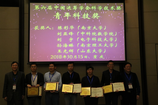 会议期间评选和颁发了中国运筹学运筹学应用奖、青年科技奖等奖项。青年科技奖由中国运筹学会设立,每两年评选一次,用于奖励在运筹学研究取得杰出成就的青年学者,是运筹学领域的权威性全国奖项。经过评选,我校3003新葡的京集团王光辉教授成为青年科技奖全国五位获奖者之一。王光辉教授此次获奖是我校首次获得中国运筹学会的相关奖项,是对我校在运筹学研究方向取得的优异成绩的充分肯定,对3003新葡的京集团运筹学科的进一步发展起到了重要的推动作用。