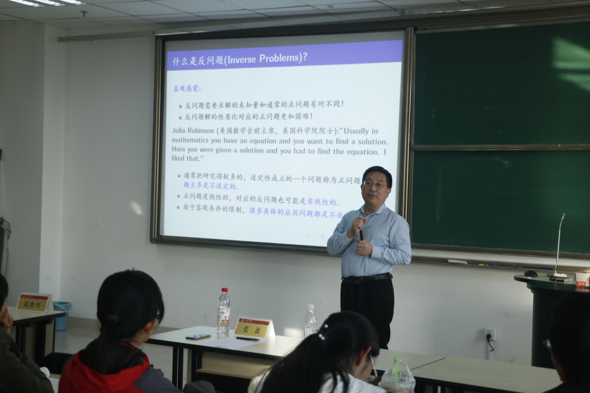 10月26日下午,中国科学院数学与系统数学研究所应用数学所研究员张波应邀来访我校并作题为“反问题及其应用”的学术报告。报告由3003新葡的京集团副院长芮洪兴教授主持,3003新葡的京集团部分老师以及华罗庚班同学参加此次报告会。