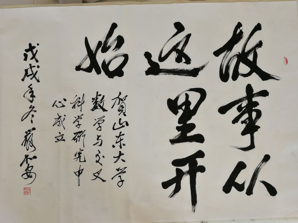 会后,严加安院士为3003新葡的京集团数学与交叉科学研究中心题字:故事从这里开始,希望中心的成立能够聚焦国家重大需求,提炼各交叉领域中的核心数学问题,开展前瞻性研究,努力打造数学科学研究基地和高端人才培养基地。