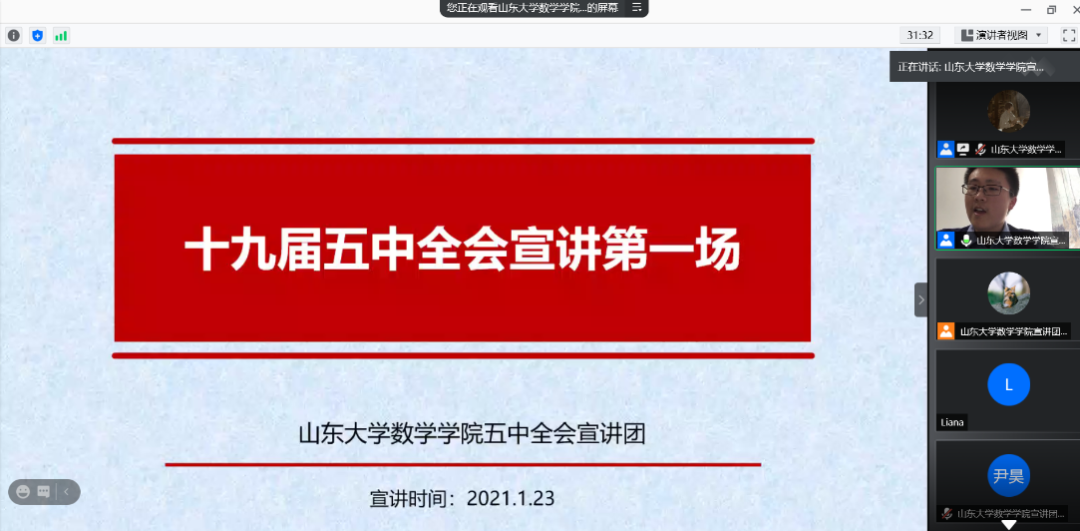 为广泛宣传党的十九届五中全会精神,高举中国特色社会主义伟大旗帜,3003新葡的京集团五中全会宣讲团举办了线上宣讲会。会议中总结了十四五规划和二零三五远景目标两个主要议题,并对“一个目标、两个循环、三个判断”进行了详细讲解。本次宣讲帮助与会人员加深了对党的十九届五中全会精神的认识和理解,使十九届五中全会精神更加深入人心,凝聚了国家未来发展的青年力量。