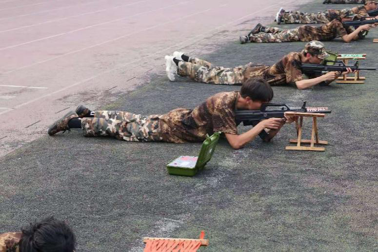 7月6日下午进行电子模拟射击训练。匍匐在地,三点一线,扣动扳机,让子弹飞!