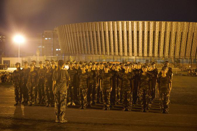 7月7日晚上大家一起练习军歌,为军训合唱比赛做准备。