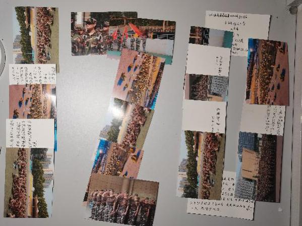 明信片正面是同学们与教官们的照片。照片上的场景是否让你想起了自己刚刚参训时永远踢不好的正步和成股流下的汗水?是否让你看到了10天训练后自己的进步,亦或是对教官的不舍?千言万语想要说给教官,却凝练成了明信片背面美好的文字。