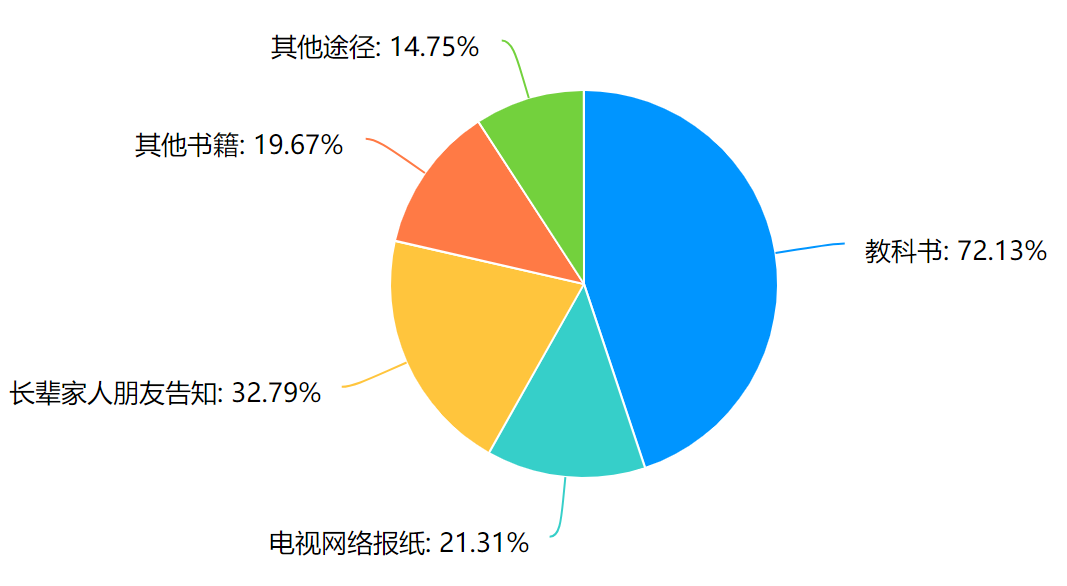 本次调查对象中理工科同学占比近80%,李大钊先生精神在小学阶段普及率就达到78%,其中以教科书形式获取资料占比超过70%。李大钊先生的事迹和精神能得到广泛普及值得认可,但我们觉得其获取渠道不应仅仅局限于教科书。家庭教育以及社会媒体也应该肩负起传播红色精神的责任,不再让红色精神的受众仅仅局限于学生层面,而是让社会的每一位成员都能得到红色精神的洗礼。