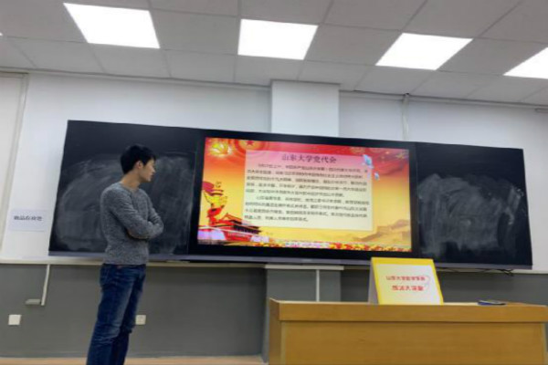 活动伊始,刘振宇先为大家传递本次党代会的主要思想,依次讲解了学校学科建设、推动一体化发展、服务山东以及拓展交流等方面内容;随后着重讲解了如何将“习近平新时代中国特色社会主义思想”用于山大的建设发展,接下来刘振宇同学还讲解了如何建设世界一流大学,使同学们对学校的目标与发展思想有了更清楚的认识。