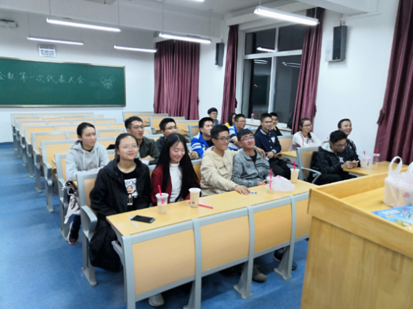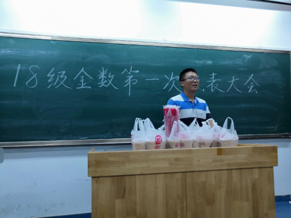 会议伊始,班长雍晋玮隆重邀请2016级学长苏山为全体同学作简要讲话。苏山学长热情欢迎了所有新加入金融数学班的同学们,并期待着参与即将进行的各类活动。
