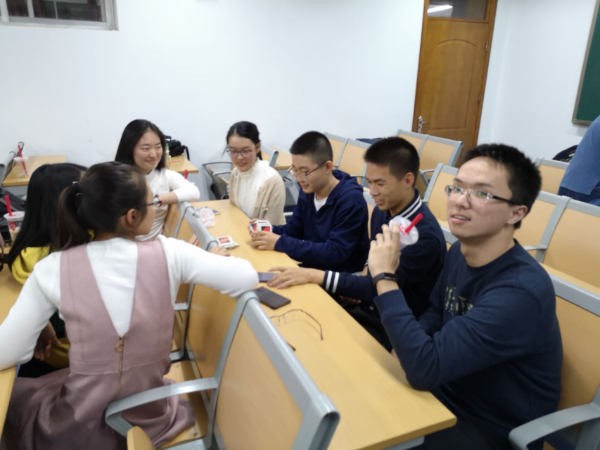 轻松愉快的“破冰之旅”在欢声笑语中告一段落。紧接着,副班长和文体委员将同学们分成了几个小组,开展了趣味与益智并行、合作与分工共存的桌游棋牌活动。同学们在享受桌游棋牌的无限乐趣的同时,收获了与班级同学共同探索、一道争先的合作经历,切身体味到了身处同一团队合作共赢、积极进取的团队精神和“人人为我我为人人”的无私奉献精神。