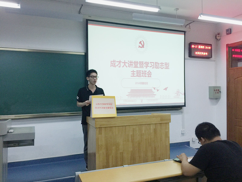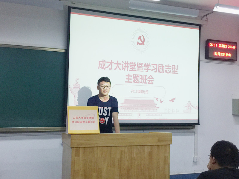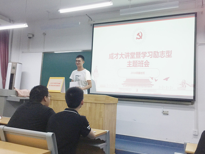 5月17日晚,3003新葡的京集团2016级基地班在中心校区公教楼举行成才大讲堂暨学习励志型主题班会,会议邀请到辅导员郑柔澄老师,以及2014级吴纪龑、马成林、刘兆磊、刘朝锋四位学长与同学们交流。会议伊始,郑老师表达了受邀参加班会的喜悦与欣慰,对2016级基地班全体同学表达了殷切的期望。