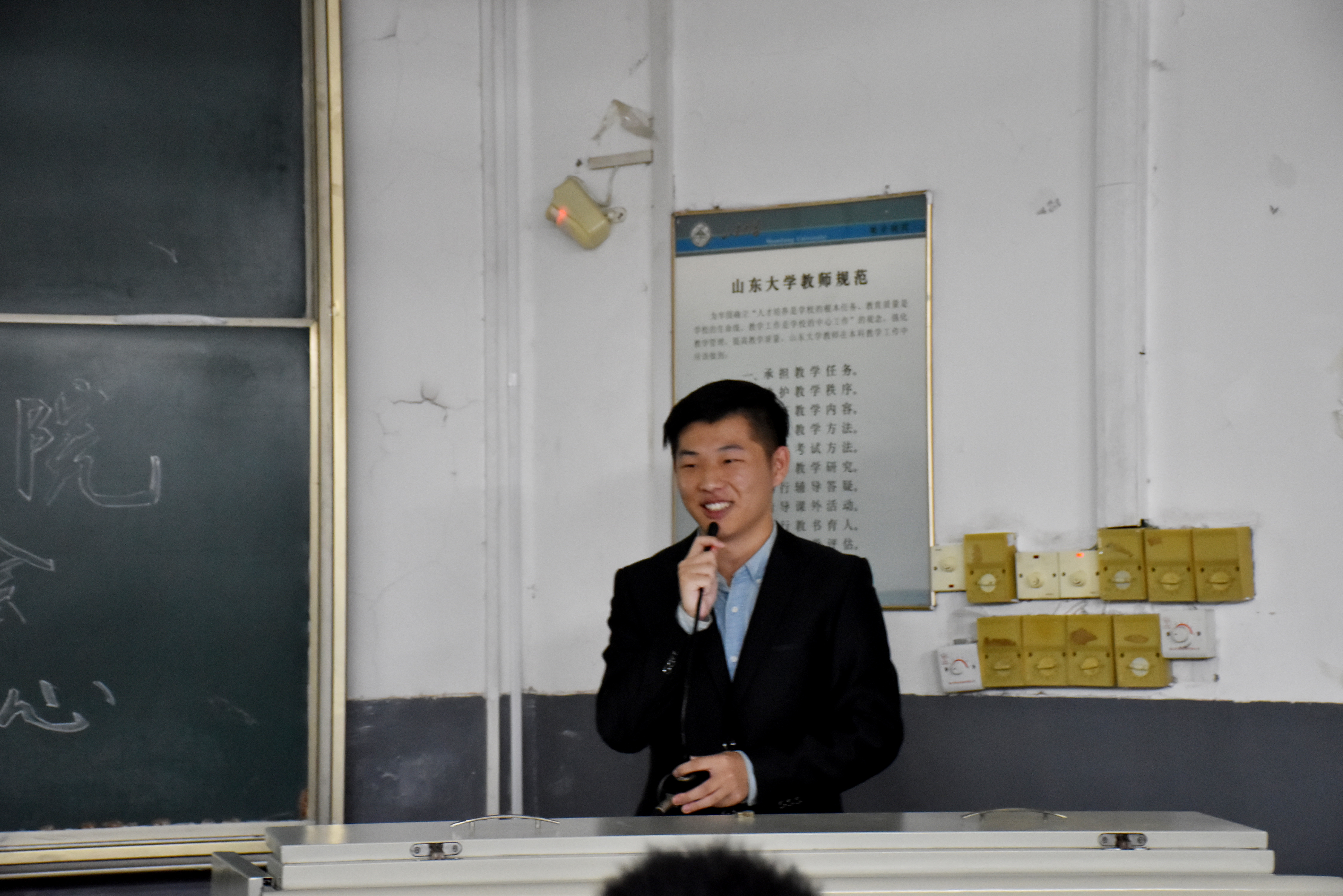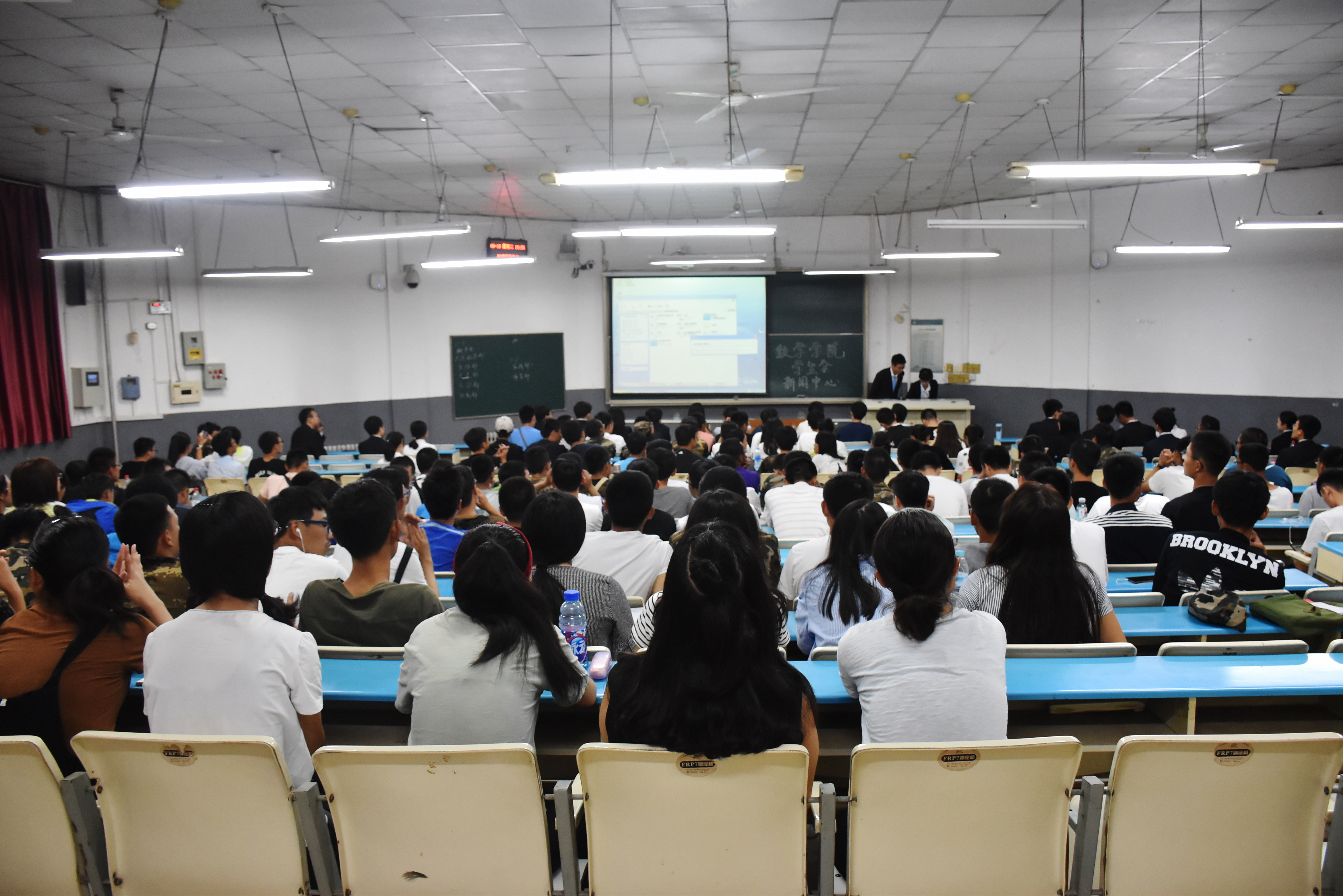 学生会宣讲过后,充满才华气息的新闻中心主任解家辉上台简单介绍了新闻中心的职能和优势,其中采访优秀学长学姐和观看国内数学名家的讲座部分,赢得了台下观众的掌声与欢呼。随后上台的是编辑部副主任王立达、微信运营部副主任黄瑞庆、摄影部王宇瑶,他们依次介绍了部门的相关活动及纳新要求,希望新生最好有写作基础,但是如果没有基础也可以前来报名,新成员有学长学姐负责培训。加入新闻中心,不仅可以锻炼一个人的新闻工作能力,同时可以接触到一些优秀的学长学姐、国内名家,获得诸多学习经验。