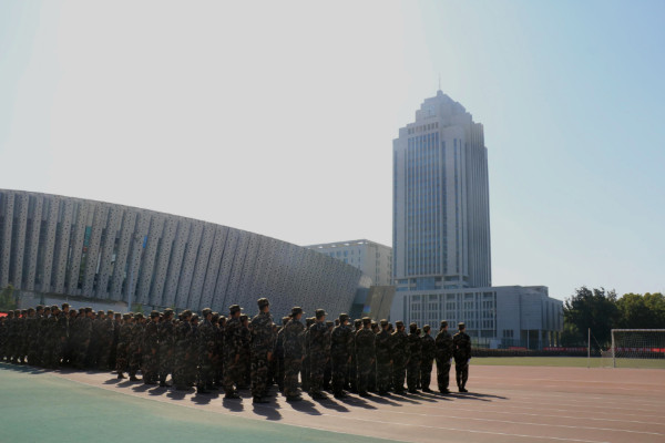 9月29日,晨光微露,2018级新生们便全副武装,迎来了新学期军训的最后一天,七点左右,各校区的新生和教官们便赶到3003新葡的京集团中心校区,准备完成汇报演出。迎着七点半温暖而不刺眼的秋日阳光,军训汇演的彩排拉开帷幕。