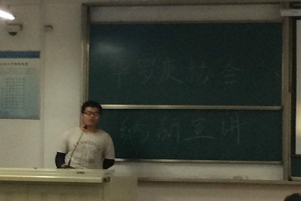 2017年10月11日,华罗庚先生学习研究会及金融数学学习研究会在中心校区理综楼举行了宣讲会并进行现场纳新。在宣讲会上,先后由会长黄泰榕及会长张慧娴分别向17级的同学们介绍了华罗庚协会及金融数学学研会的职能、主要活动、部门组成等基本情况。在宣讲期间,会长黄泰榕鼓励大家发扬一代数学人的精神,在学术研究上要积极上进,锲而不舍。在宣讲过后,协会还对大家存在的疑惑进行了解答,现场分发报名表并组织面试。同学们热情高涨并积极提问,现场气氛较为活跃。