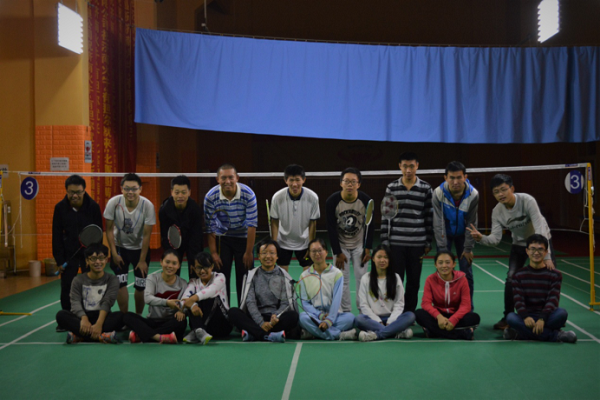 比赛开始前,选手们先进行了热身。为了保存同学们的体力,赛制进行了细微的改动,将常规赛制中的总分21分,分别改为15分和11分。由院队队员担任本次比赛裁判,赛制分为循环赛和淘汰赛,男生分为三组、女生分为一组。比赛在九点四十五分正式开始。