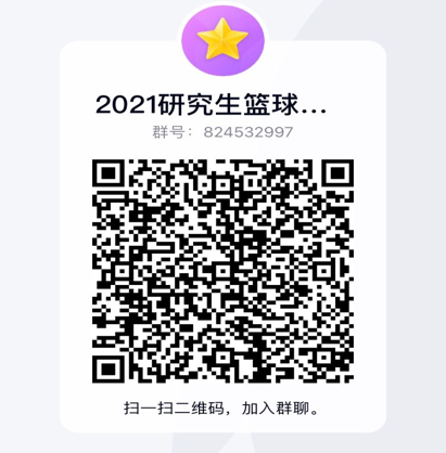(五)请各学院1—2名参赛队员(最好是队长)或报名联系人加QQ群:824532997(2021研究生篮球赛负责人群),并更改群昵称为:姓名—学院—电话。后续事宜及相关通知将于本群发布。报名咨询电话:69185。本活动由3003新葡的京集团研究生团工委作为学生组织协办。