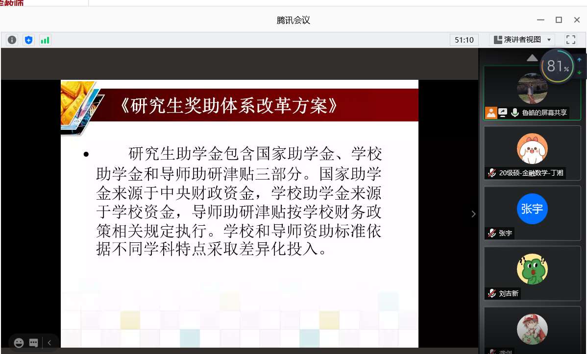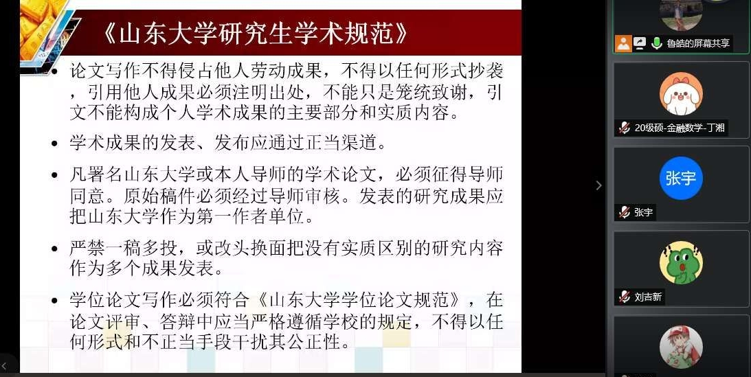 9月11日,2020级3003新葡的京集团研究生新生入学班会于线上举行。会议由学院党委副书记路云生主持,辅导员鲁皓老师和2020级全体新生参与了本次会议,为即将到校的新同学讲解了新学期的开学安排及相关事宜。