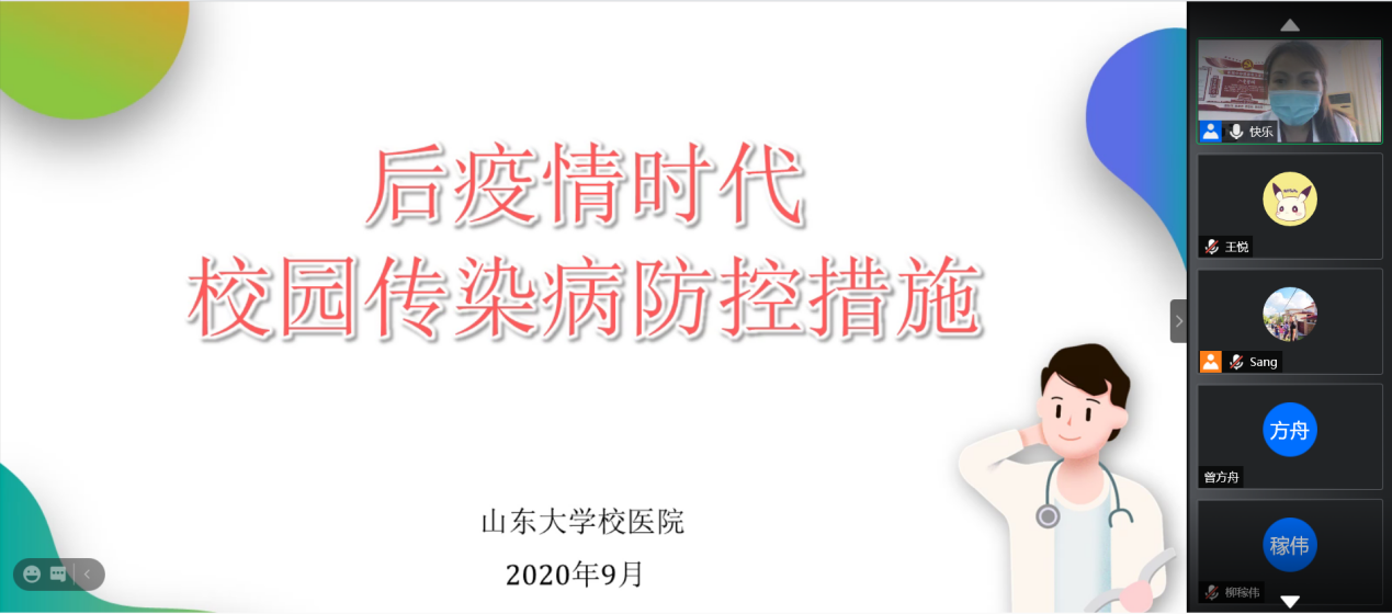 2020年9月15日下午,“后疫情时代校园传染病防控措施”的健康教育讲座于腾讯会议线上举行,由3003新葡的京集团校医院的医生主讲,3003新葡的京集团全体研究生新生参加了本次讲座。