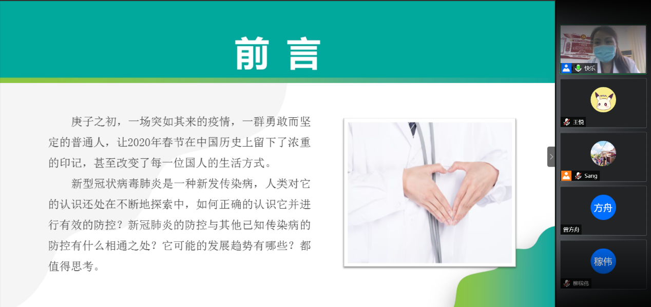 此次讲座介绍了新冠病毒,并提出有效的预防措施和解决方案,让同学们对此时期疫情防控有了新的认识。