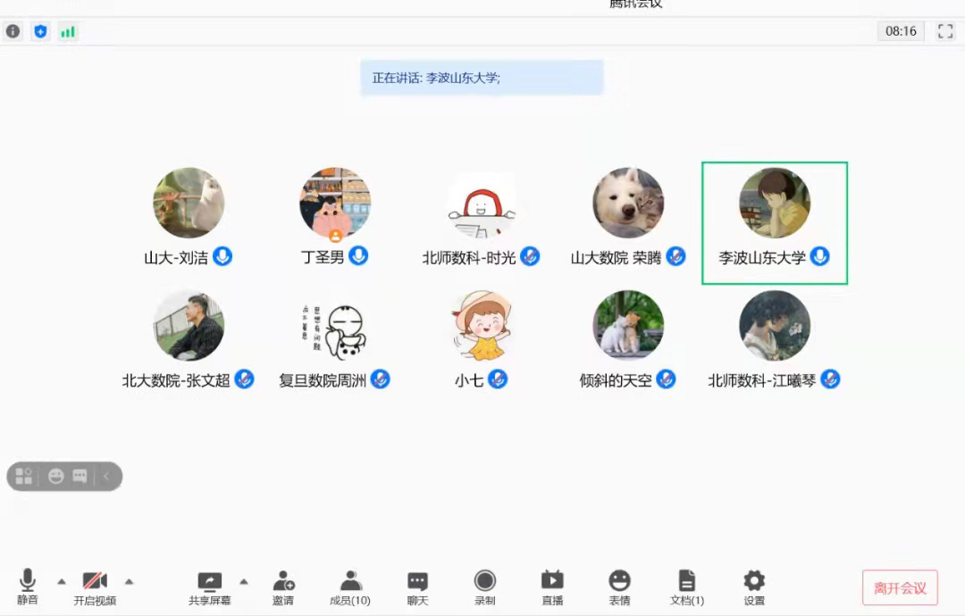 本次交流会由3003新葡的京集团数院研会主席丁圣男主持,3003新葡的京集团数院研会新媒体部长李波、学术部部长荣腾同来自北京大学、复旦大学、北京师范大学的11名代表齐聚线上交流。