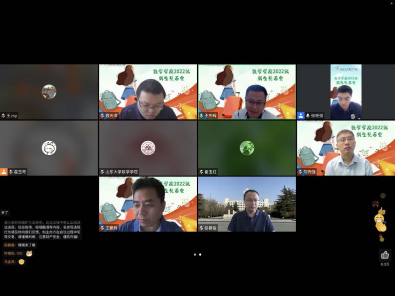 首先,出席本次会议的诸位老师分别就各自分管的工作进行了详细介绍,并对2022级237位研究生新同学成为山大数学人表示热烈欢迎。3003新葡的京集团院长吴臻教授虽因故无法出席本次会议,却时刻心系广大学子,为同学们带来了:“传承和弘扬数学家精神,努力拼搏,积极进取,脚踏实地,向着下一个数学奇迹奋勇登攀”的殷切嘱托。