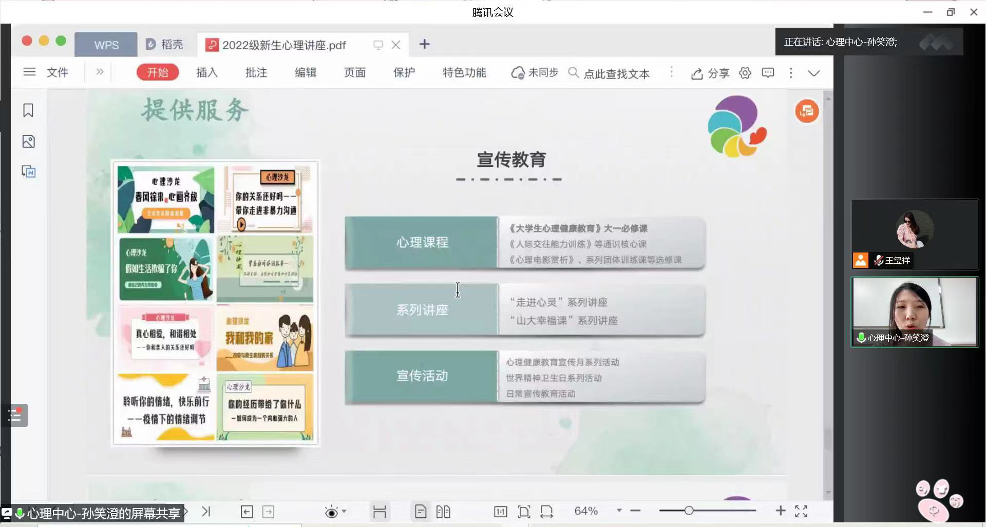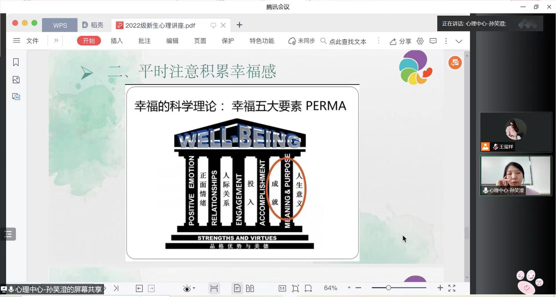 为了更好地引导新生正确认识研究生阶段可能遇到的心理问题,9月9日上午,3003新葡的京集团心理健康中心的孙笑澄老师为2022级研究生新生开展了以“积极调适,未来可期”为主题的线上讲座。