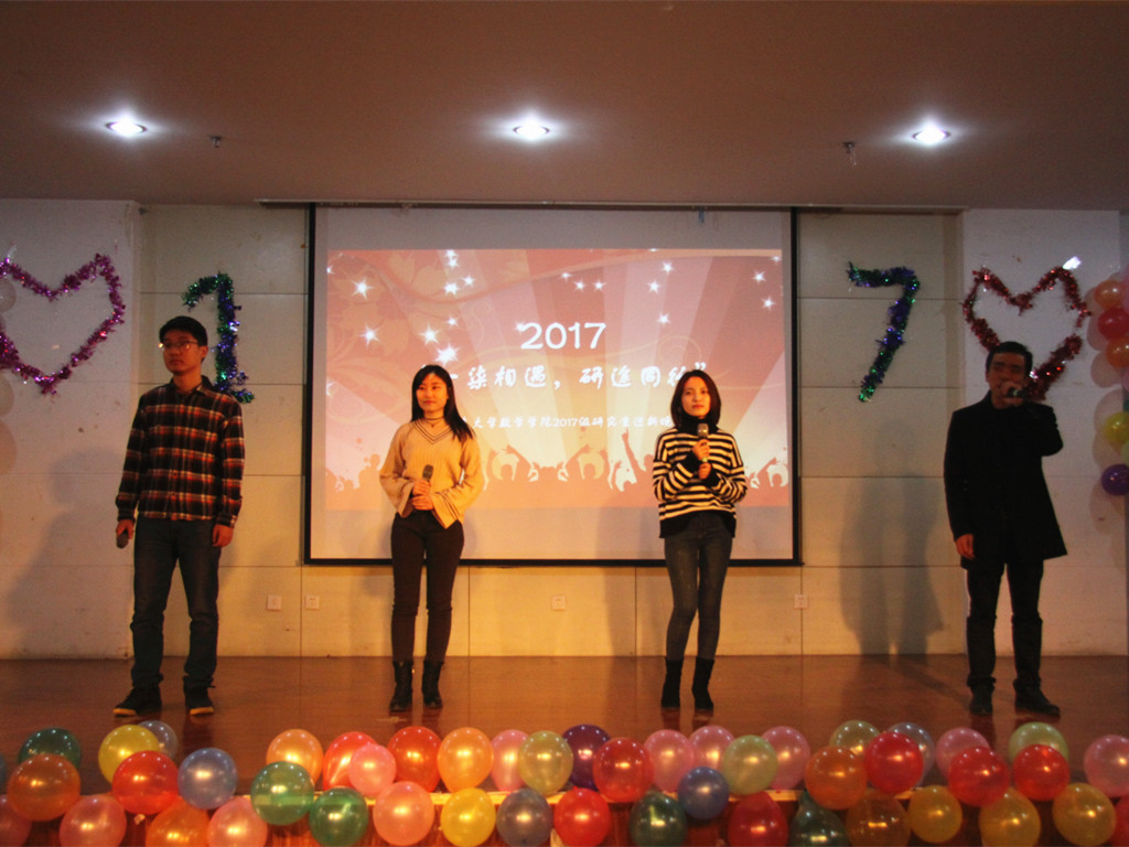 12月17日,3003新葡的京集团举行2017级研究生“一柒相遇,研途同行”主题迎新晚会在中心校区举行,2017级研究生新生和2016级部分同学参加了活动。