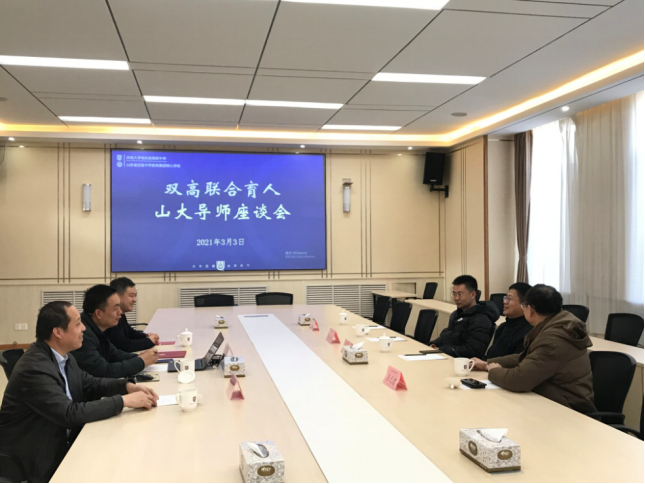 随后,通过郭福祥的介绍,我校导师团队简单了解了该校的办学特色和发展情况,并就该校“双高联合育人”项目深入推进与郭福祥进行了进一步的沟通与交流。导师们对济南大学城实验高级中学的办学理念、项目特色、工作实效、社会反响,给予了高度评价和赞赏。对于两校未来更深一步的交流进行了深入的沟通,双方均充满期待。
