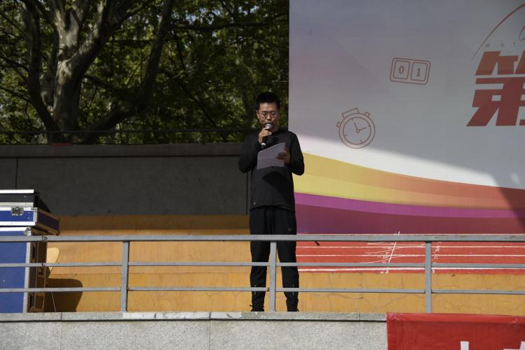 路云生致开幕词,他代表学院对精心筹备本届运动会的工作人员表示诚挚的敬意,向全体运动员、裁判员致以亲切的问候和美好的祝愿。他讲到,发展体育运动、增强国民体质是党和国家制定的一项重要方针,是实现民族强盛、国家复兴的基础,希望本次运动会可以大力弘扬全民健身的健康理念,全面有序地推动学院群众性体育活动蓬勃开展,强化同学们的健康意识、竞争意识和团队意识。他还强调,运动员们应充分发挥“友谊第一,比赛第二”的优良作风,做到赛出成绩、收获友谊、共享快乐,并预祝运动会圆满成功。随后,裁判员代表王迪、运动员代表黄桢豪依次进行庄严宣誓。