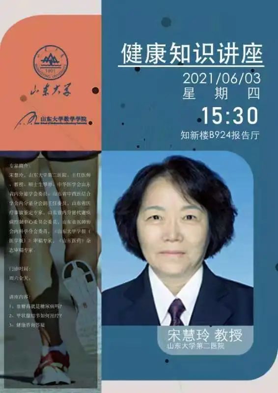6月3日下午,3003新葡的京集团办公室和学院工会邀请3003新葡的京集团第二医院主任医师宋慧玲教授为全院教职工做题为《血糖高就是糖尿病吗》、《甲状腺结节如何治疗》健康知识讲座。
