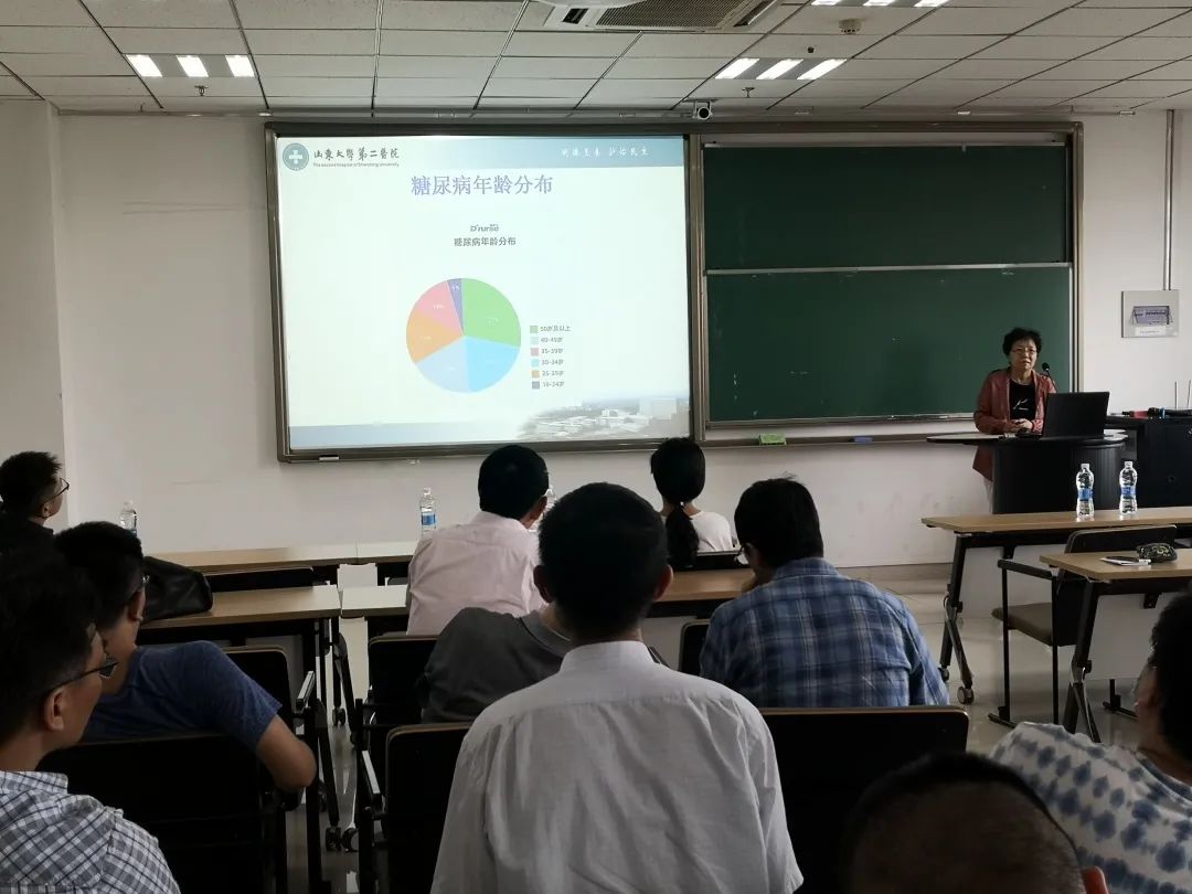 宋慧玲结合教职工体检中常见的血糖高、甲状腺结节等问题,从原因、分布、典型及非典型症状、诊断标准、治疗方法、控制措施等方面进行了详细分析讲解。讲座内容专业翔实,又通俗易懂,宋慧玲用生动的图片深入浅出地解释病理,又用亲身经历形象细致地描述病例。她娓娓而语,引导听者逐步提高对糖尿病及甲状腺结节防治的认识。宋慧玲特意准备了充分的答疑时间,现场气氛热烈活泼。老师们不仅咨询了如何查看和读懂体检报告上的血糖和甲功指标等专业问题,还提出“加碘盐对甲状腺好还是不加碘盐更好”这样“接地气”的问题。年轻老师提的问题很“时髦”——市面上流行的苏打水和无糖饮料对血糖有影响吗?引来大家阵阵笑声。宋慧玲大夫和李蕊大夫耐心细致地解答了大家的问题,用实际行动表现了人民医生为病人热情服务、不厌其烦、悉心讲解的工作状态,在场的教师们深受感动。