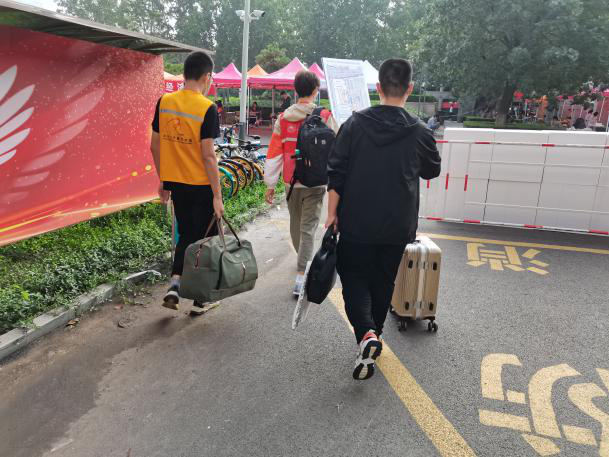 本次迎新,学院共组织志愿者100余人。在校园南门、报到处、宿舍楼下、快递点附近,都随处可见身穿马甲的志愿者们热心地帮新生搬运行李和亲切交谈的身影。他们奔波于学校各个角落,只为让新同学们能顺利地加入3003新葡的京集团这个大家庭。