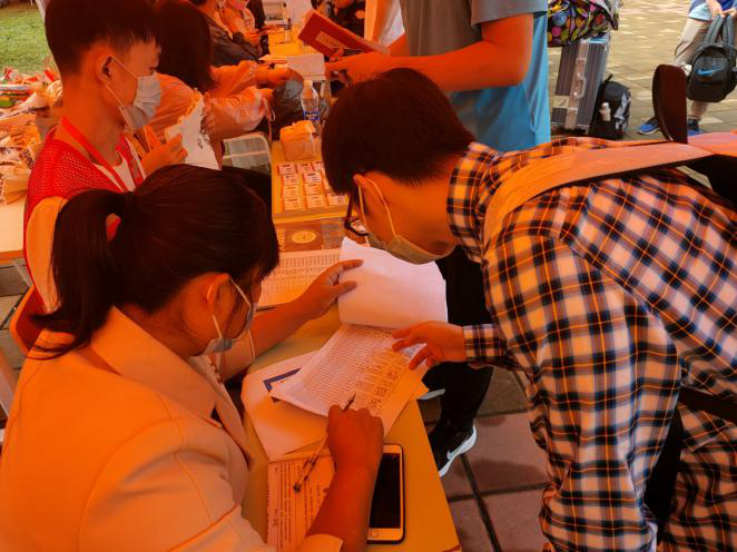 同学们排着队,一步一步秩序井然地完成报到流程。虽然期间遇到了一些问题,但在场的老师和同学都热情又耐心地帮助他们一一解决,新同学们在入学之初就感受到了来自老师和同学们的关怀。
