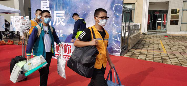 秋高气爽,凉风习习。6日一早,就有新同学陆陆续续来到了新生报到处。他们手拿着鲜红的录取通知书,推着行李大步走来,脸上充满了口罩也掩盖不了的喜悦和期待。淅淅沥沥的小雨阻挡不住迎新工作人员的热情和新生入校的激动之情,在金秋送爽的九月,是“数”与你的怦然心动。