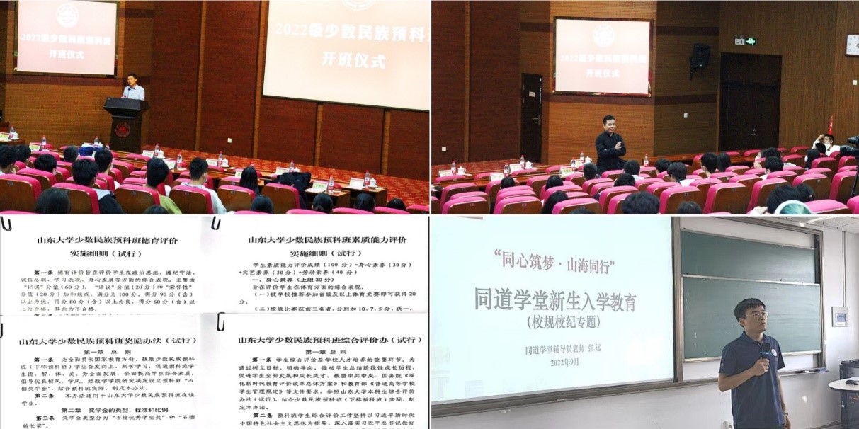 聚焦协同发力,提升组织育人之效。强化组织领导,完善工作机制,务求育人实效,校院“多层级”“多维度”协同发力,系统推进,充分发挥民族人才培养体系。校党委副书记王君松,副校长、3003新葡的京集团院长吴臻,校长助理、本科生院院长、本科招生办公室主任曹现强出席2022级民族预科班开班仪式,王君松为班级授旗,吴臻为班主任颁发聘书,曹现强为学生介绍培养体系。王君松、吴臻为新生讲授“开学第一课”,引导学生厚植家国情怀、培塑担当精神、锤炼崇实品格、强化创新素养。学院多次召开党政联席会,专题研讨民族预科学生教育、管理、服务、发展等工作,周密筹划,扎实部署。学院学生工作办公室每周例会,安排专门时间研讨民族预科班相关工作,创新育人路径,狠抓落实,协同创新。