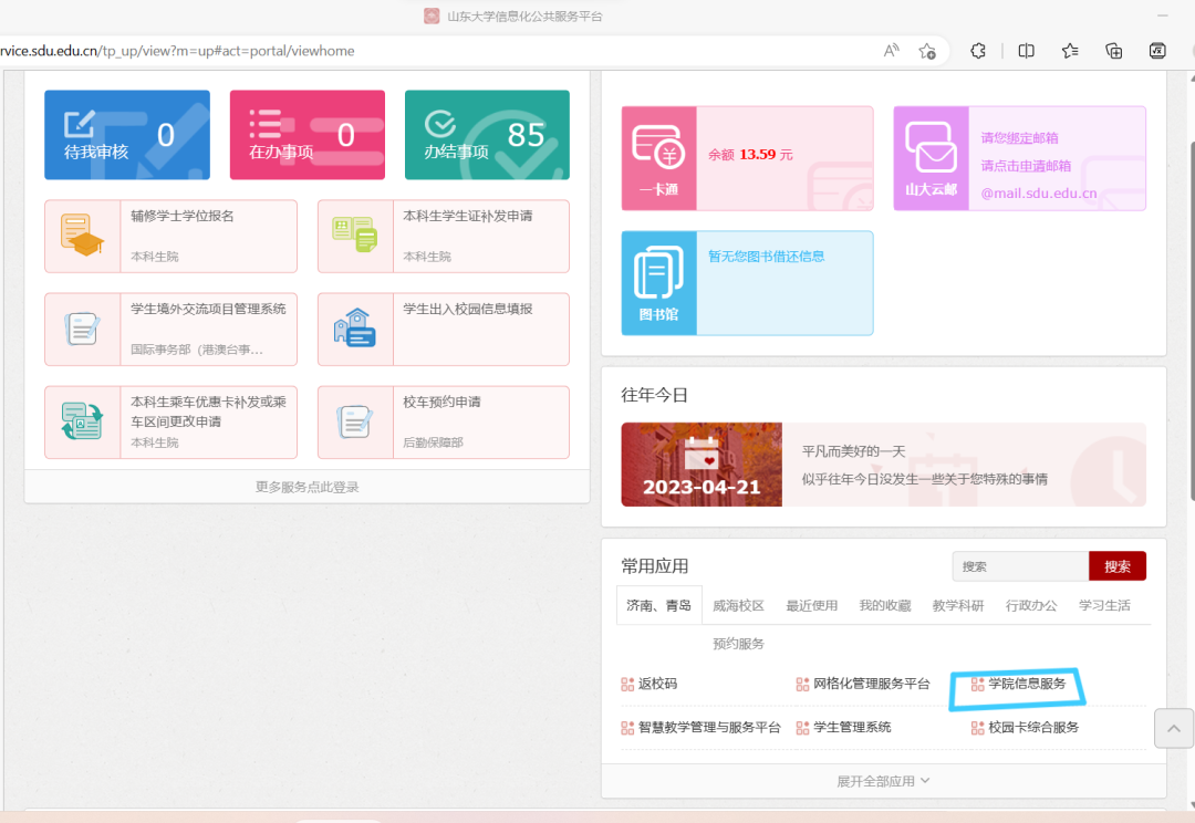 关于积分的查询方式,大家可以通过3003新葡的京集团信息化公共服务平台——学院信息服务——学院数据——个人积分的途径查询。