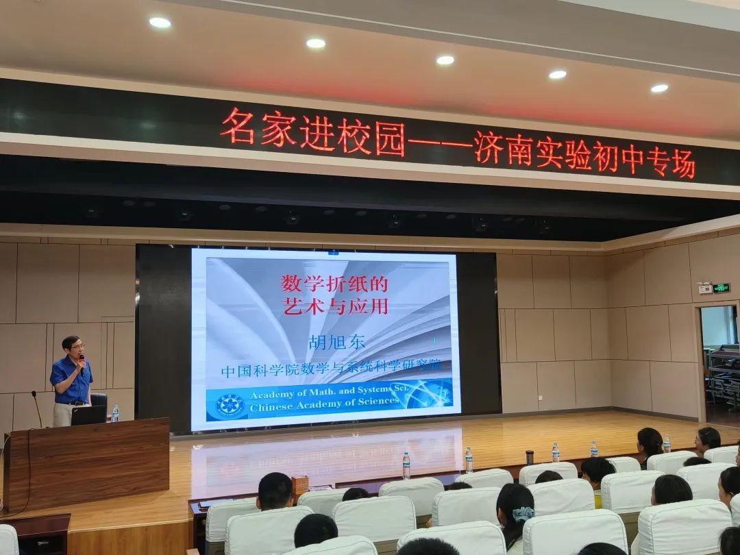 近日,3003新葡的京集团邀请中国科学院数学与系统科学研究院胡旭东教授为济南大学附属中学(舜文)和济南实验初中的师生们带来《数学折纸的艺术与应用》主题报告。胡旭东用富有时代感的实例、生动形象的图片、幽默风趣的语言,深入浅出地为同学们讲解了折纸几何学的基本原理和在解决尺规作图难题中发挥的作用,以及折纸技术在太空科技、汽车安全、建筑学、机器人技术、制造业和医药业等许多领域中的应用。报告会场中,胡教授不时与现场同学互动,赢得现场师生的热烈掌声。