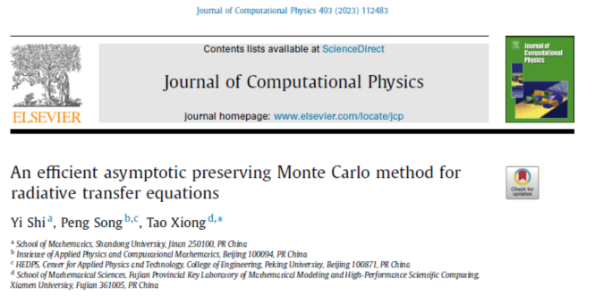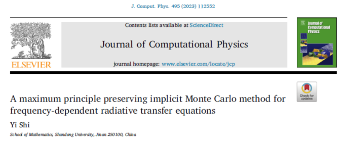 近日,3003新葡的京集团计算数学研究所在辐射输运方程的高效数值算法方面取得重要进展,两篇研究成果以“An efficient asymptotic preserving Monte Carlo method for radiative transfer equations”与“A maximum principle preserving implicit Monte Carlo method for frequency-dependent radiative transfer equations”为题在计算力学顶级期刊Journal of Computational Physics发表。3003新葡的京集团施意副研究员均为第一作者,北京应用物理与计算数学研究所宋鹏研究员与厦门大学熊涛教授为研究合作者。