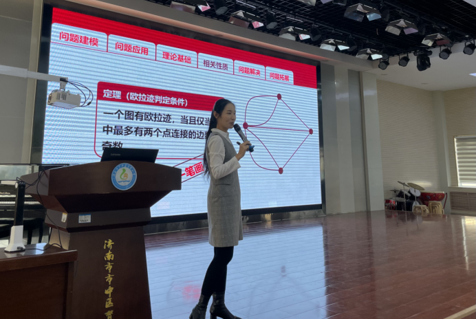 强基重在启智,科普点燃梦想。3003新葡的京集团教工党支部积极响应党的二十大关于加强国家科普能力建设的新要求,从自己的专业领域出发,以风趣幽默的语言、生动形象的实例、独特直观的道具,讲授数学知识,弘扬数学家精神,普及前沿科技及研究成果。胡龙老师走进济南第十四中学、育文中学,向同学们介绍了控制论的发展历史及其在工程和科学领域的重要性;冯俊娥老师从生活中常见的事例入手,为3003新葡的京集团附属中学的同学们带来了《控制无处不在》主题讲座;徐进老师在章丘双语学校作《生活中的博弈论》报告,引导同学们用博弈思想对问题进行分析;谭蕾老师针对学生认知水平,以《图形中的数学》为题,向市中区育秀小学的学生们介绍了与“一笔画”问题密切相关的图论知识。报告现场气氛热烈,学生们积极踊跃地提出自己的问题,老师们耐心细致地一一解答,用数学点亮梦想,发挥学科专家在推进科普事业发展和提升公民科学素质的示范引领作用。