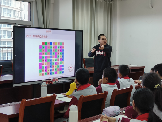 凝聚优质人才,服务基础教育。为探索创新人才培养模式,完善基础学科拔尖人才培养的长效机制,3003新葡的京集团与历城区实验小学联合成立“少年发展研究院”,开展“研究生进课堂”活动。11月16日,3003新葡的京集团学生党支部的张旭、孙铭、李嘉旻走进历城区实验小学,与同学们进行交流。李嘉旻为历城区实验小学六年级数学班的学生带来《哥德巴赫猜想与孪生素数猜想》趣味课堂,从课本中素数合数的定义出发,介绍了哥德巴赫猜想和孪生素数猜想的内容及发展历史,通过趣味小游戏引导学生用“筛法”寻找一百以内的素数,并以自己与孪生素数猜想的故事在同学们心中种下数学的种子,鼓励大家坚持梦想,追求真理,受到了师生们的热烈称赞。