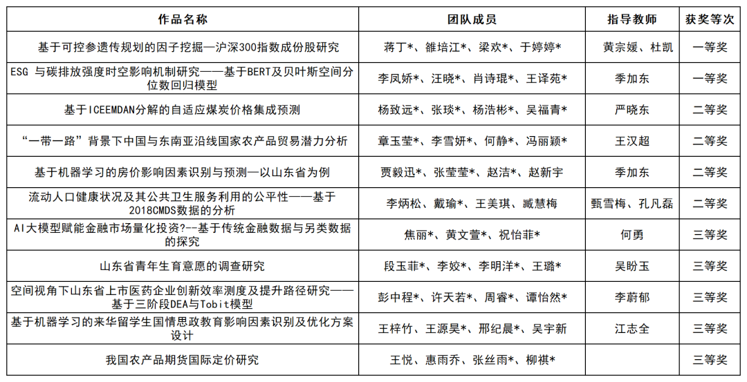本届大赛自启动以来,得到了全省15个高校的积极响应,共有186支队伍踊跃参赛,涵盖了统计、经济、计算机、医学等多个学科领域。经专家评审,共产生一等奖20项,二等奖39项,三等奖54项。